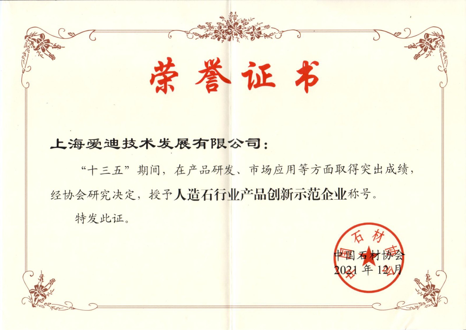 上海石材行業協會-先進單位