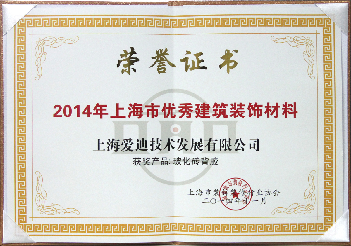 上海市優秀建筑裝飾材料——玻化磚背膠證書