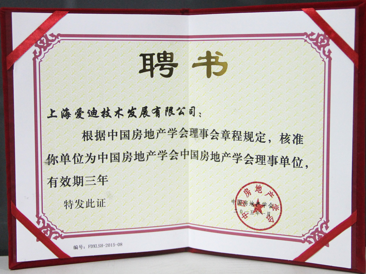 中國房地產(chǎn)學(xué)會(huì)理事單位證書