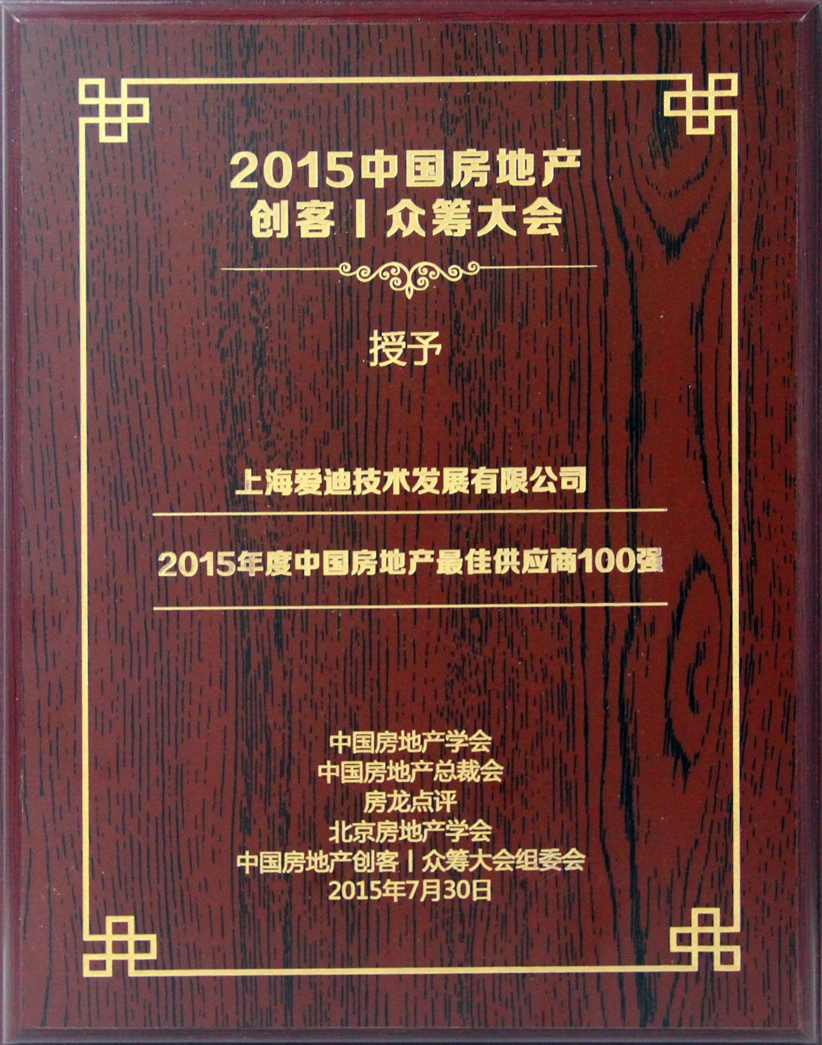 中國房地產(chǎn)最佳供應(yīng)商100強(qiáng)-證書
