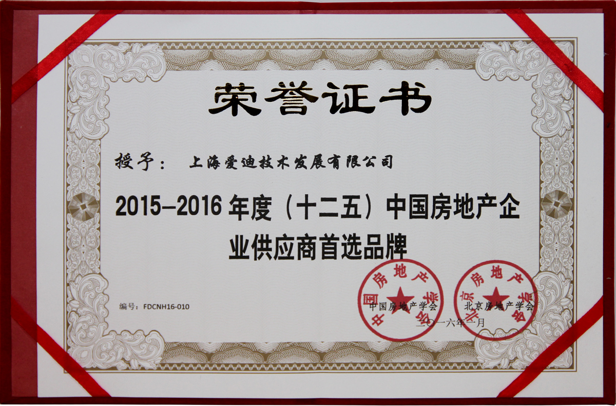中國房地產學會企業供應商首選品牌證書