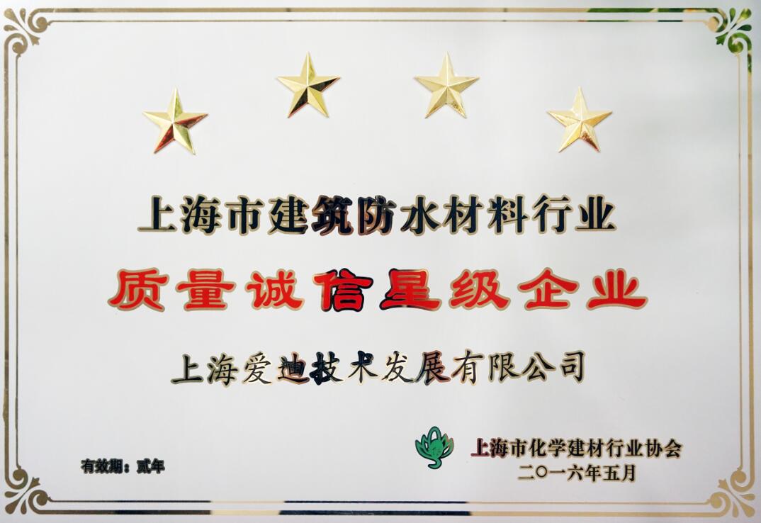 化建協會--上海市建筑防水材料行業--質量誠信四星級企業--證書