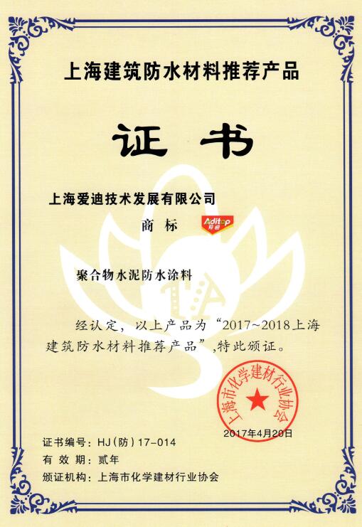 上海建筑防水材料推薦產品證書