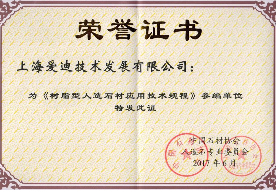 “為《樹脂型人造石材應用技術規程》參編單位“