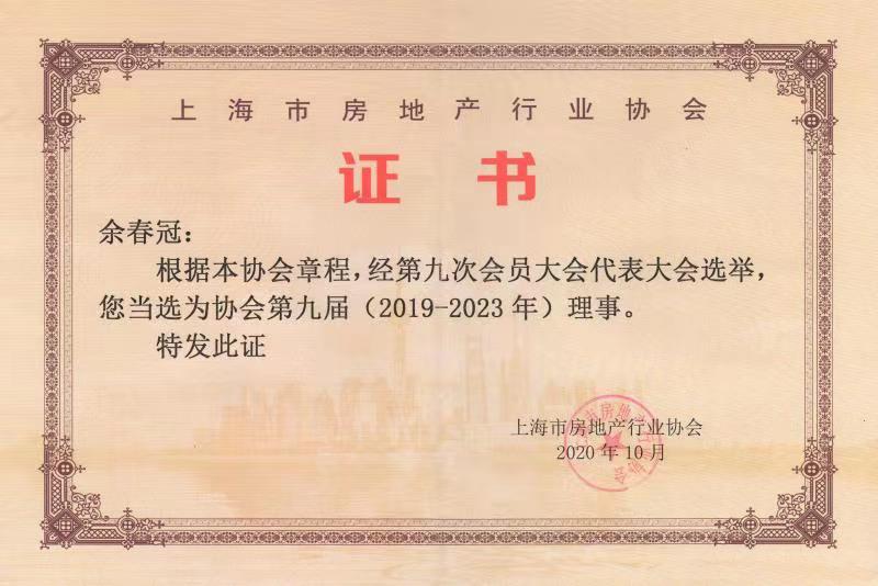 上海市房地產(chǎn)行業(yè)協(xié)會理事