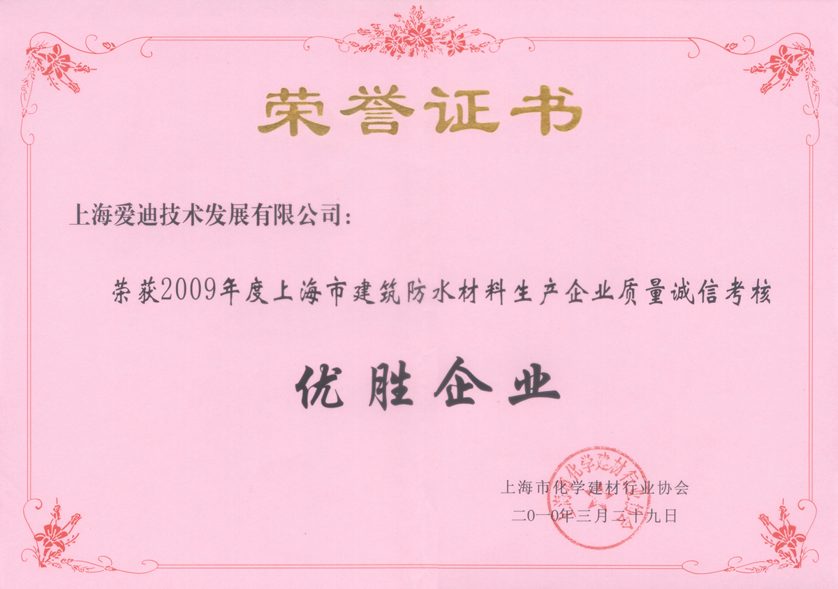 上海市建筑防水材料生產企業質量誠信考核優勝企業